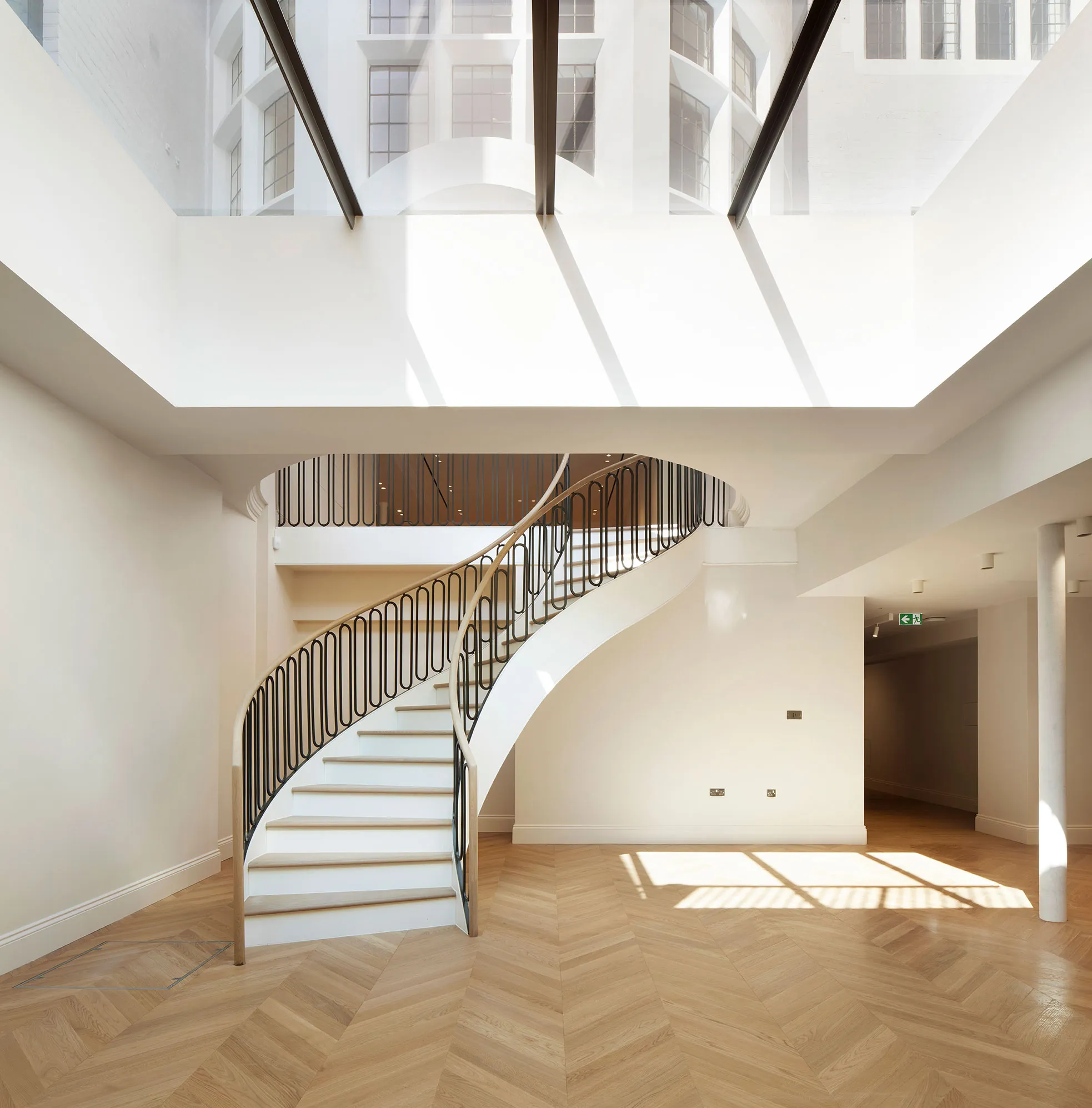 New feature staircases enhance circulation and wayfinding, while providing greater workspace flexibility. A lower ground extension provides additional area and opens onto a new courtyard, complemented by a terrace above, creating valuable external amenity space for users.