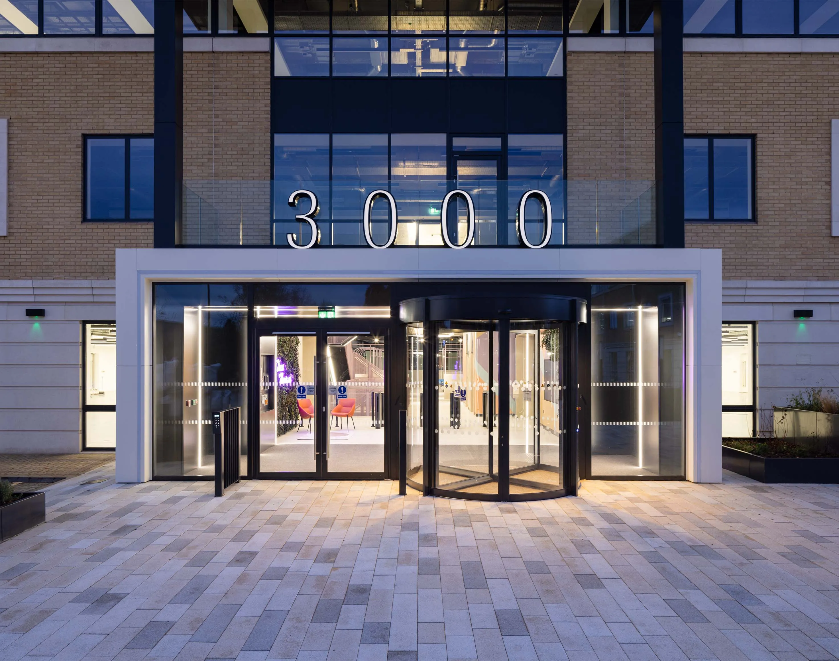 Building 3000's redesign embraced vibrant aesthetics with bold colours and textures, creating a unique identity while maintaining architectural cohesion. The refurbishment allowed flexible floor splits accommodating up to four tenants per floor with minimal Net Internal Area (NIA) loss.