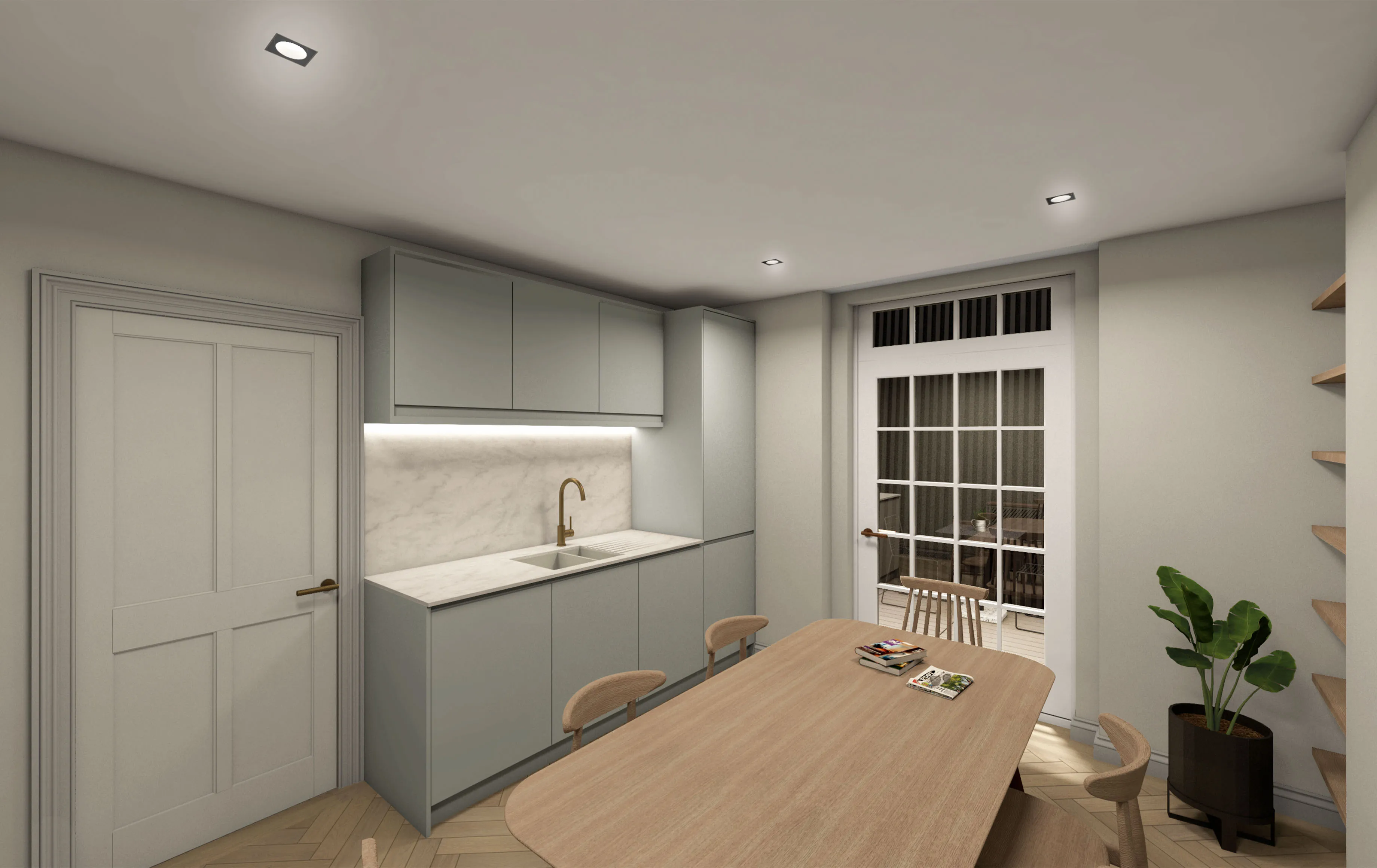 We have proposed sympathetic works to return the buildings to the high quality office accommodation expected by the current occupier. Internally, the hierarchy of rooms has been restored by removing modern partitions and flexibility is achieved with carefully considered openings between rooms. Proposed new lighting, WCs and shower facilities have a fresh, contemporary feel and are balanced by more traditional finishes elsewhere. Heating and cooling will be provided by Air Source Heat Pumps (ASHPs), the internal units enclosed in feature joinery. The rear courtyards are to be refurbished and linked to internal breakout spaces to create quiet havens within this bustling area of the city.