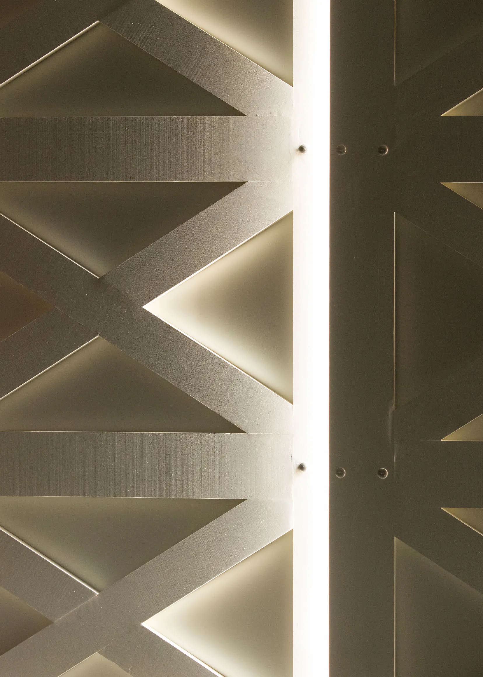 The building sits next to the lake and can be closed or opened right up. Bespoke sliding doors were made in a temporary joinery workshop in a vacant building on-site. Millimetre perfection was required to ensure they worked with the sliding door and guide rail ironmongery linked to the steel frame of the building. Frames and door carcasses were made from Accoya, an incredibly stable and hardwearing timber. There are different styles of sliding doors on opposing sides of the barn. To the front, they slide and stack internally and there is also a door for opening up and locking down the venue without having to move the larger panels. To the back of the building, the doors slide outside the face of the building, projecting on traditional barn-like rails.