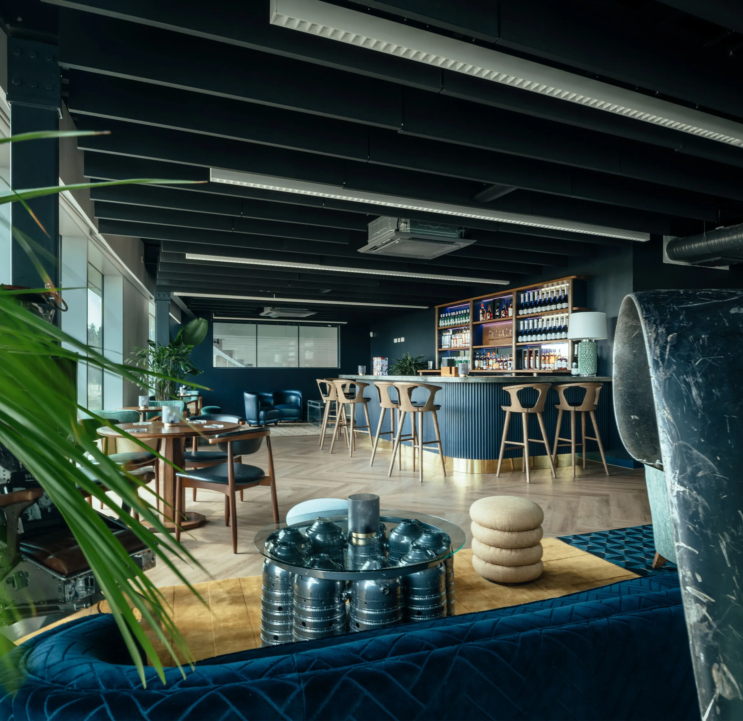 Nestled in a quieter area of the mezzanine The Wing Bar is a snug space with a relaxed atmosphere. A mix of dark tones, elements of brand colours and aviation-themed pieces and artefacts, make it the prefect space for entertaining visitors and brand ambassadors.