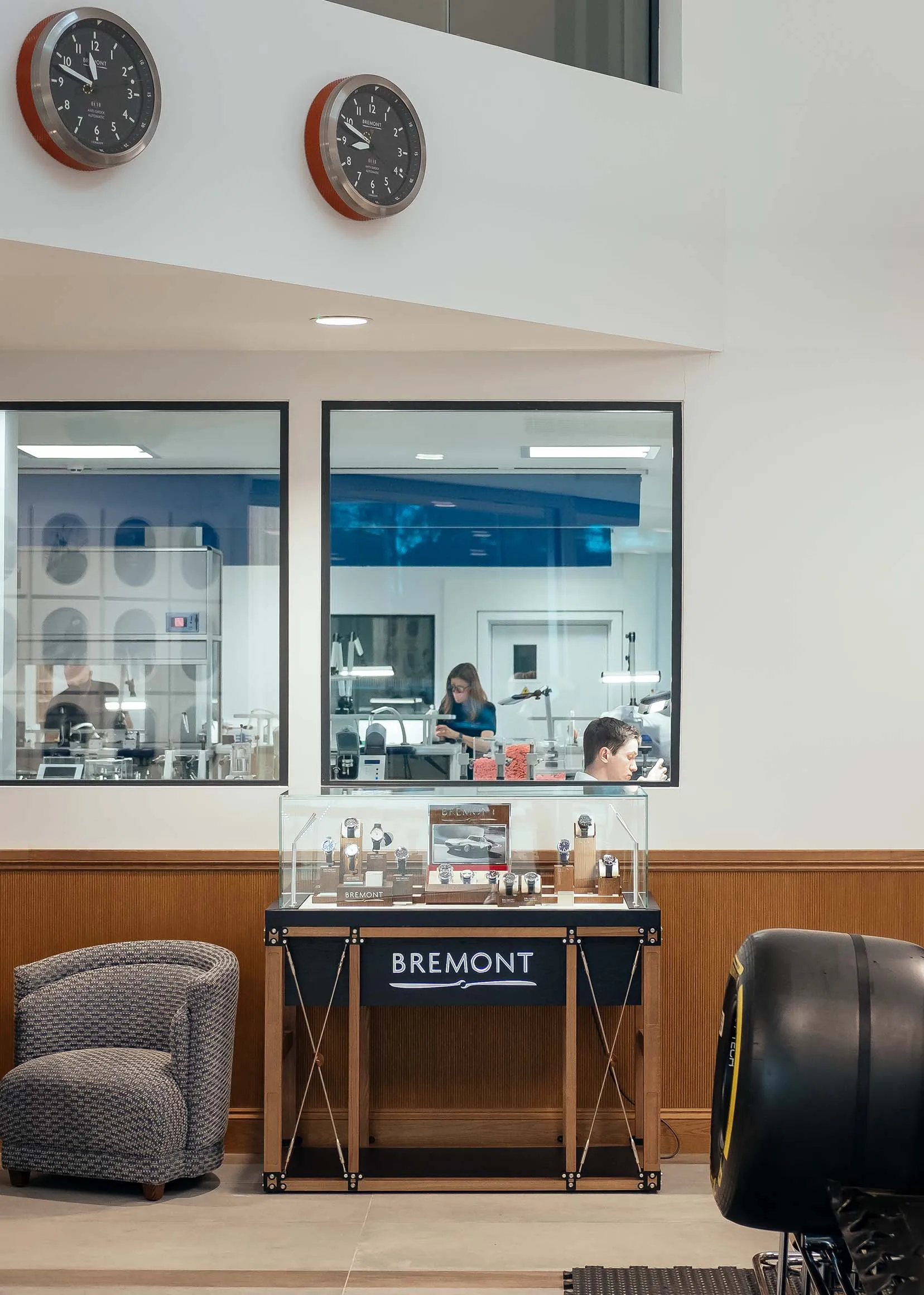 Our design was inspired by the Bremont principles of; Aviation, Engineering and Adventure. The custom-made facility is set to become the home of British watchmaking and will be both luxurious and functional.