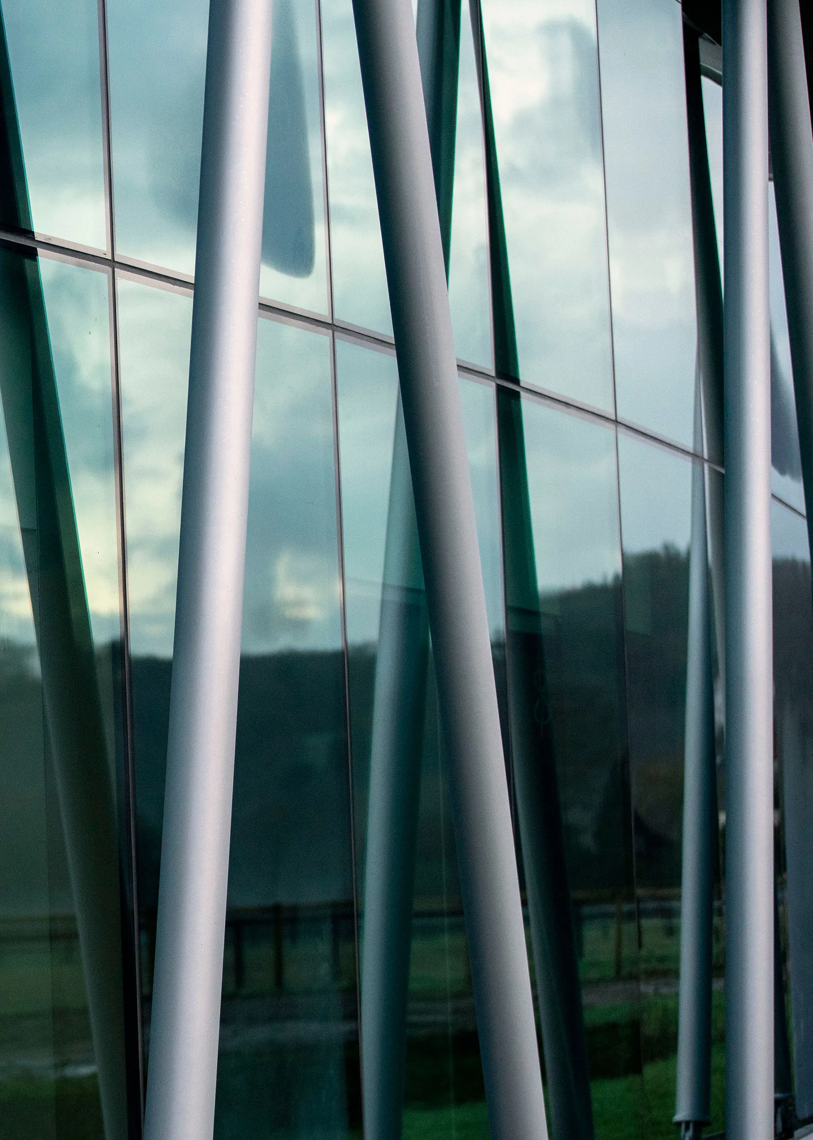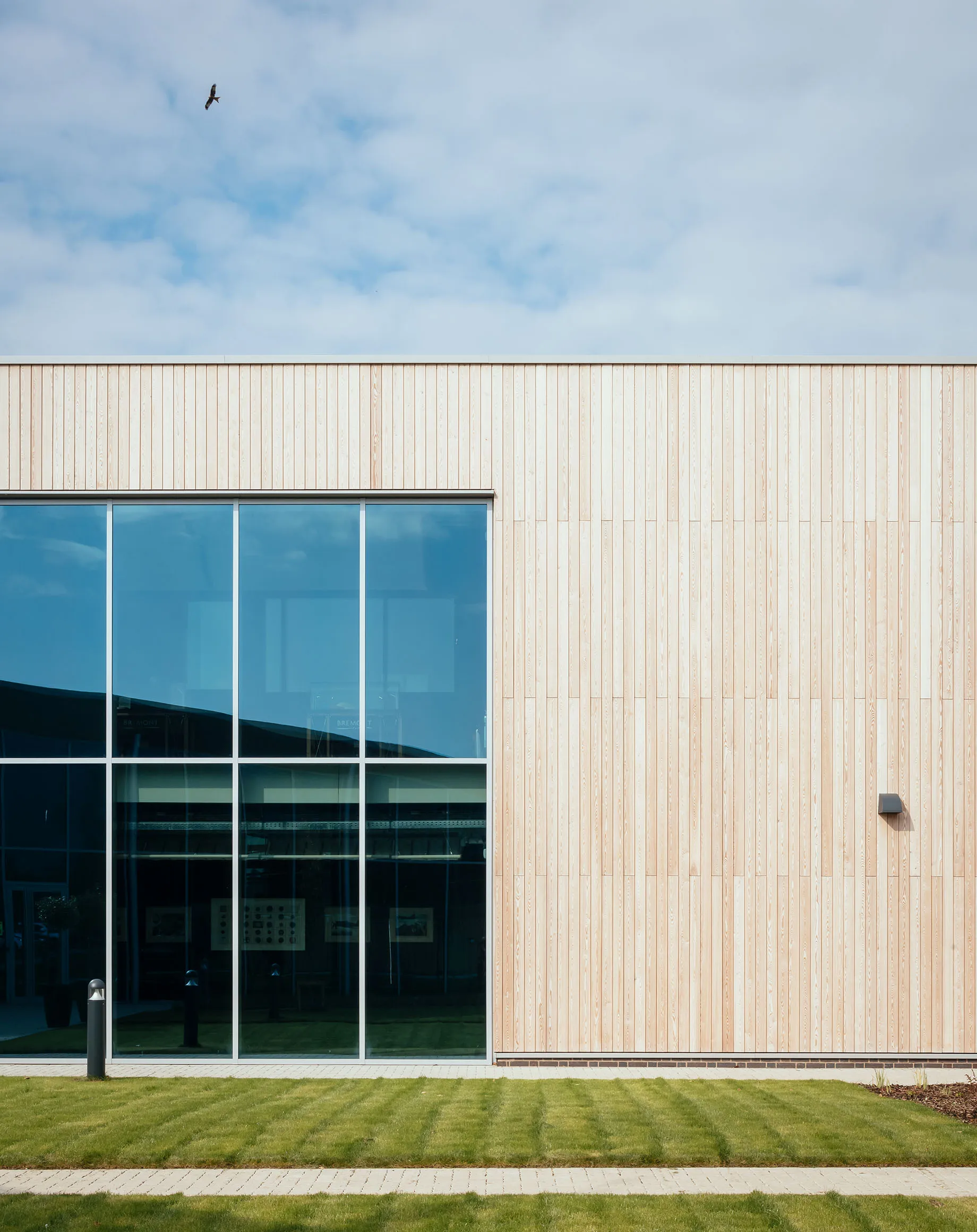 The unique manufacturing process for highly engineered chronometers requires dust free and acoustically controlled environments. To meet these requirements the building form has two separate, single span spaces to accommodate the manufacturing and office facilities with a link building nestling between.