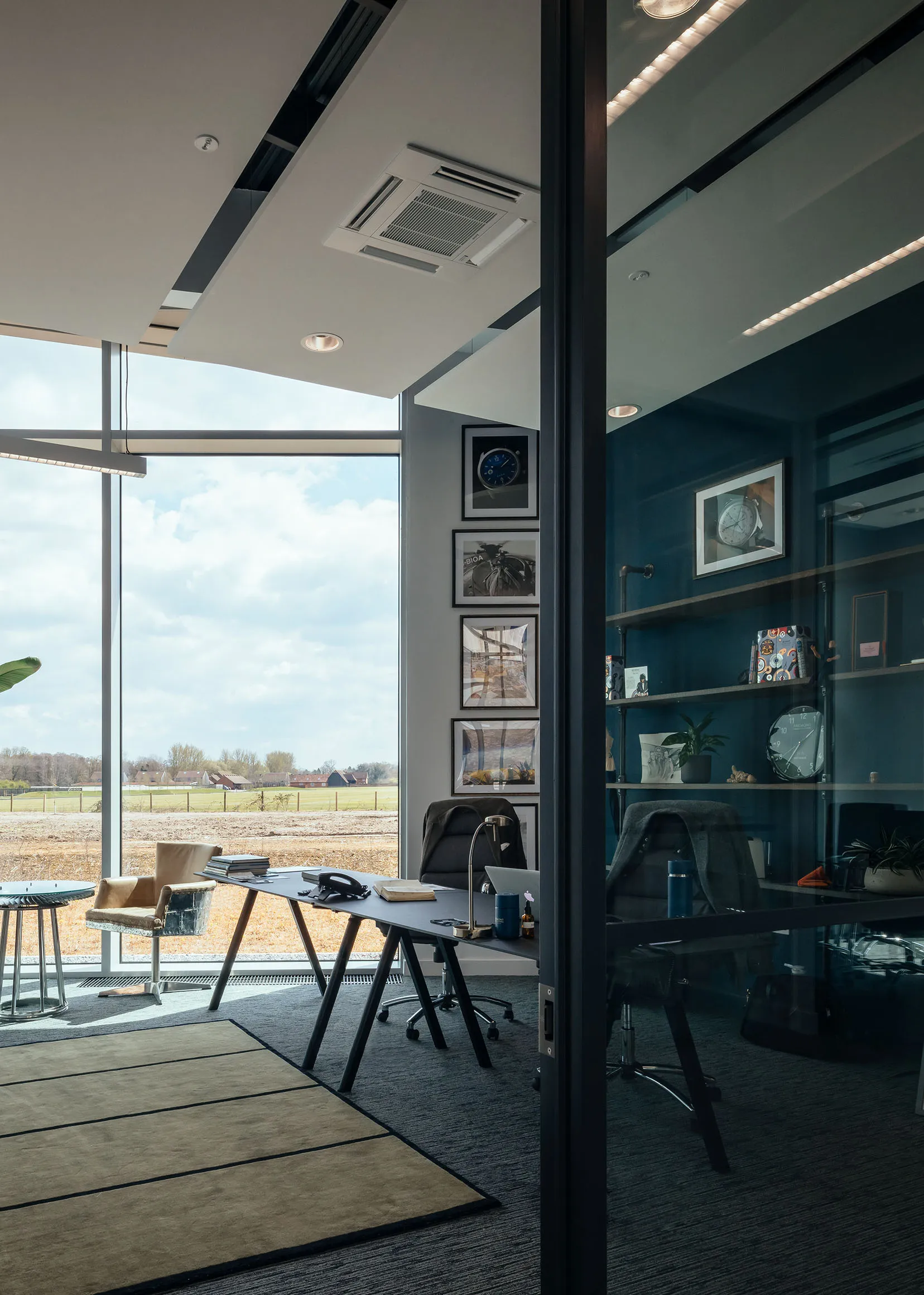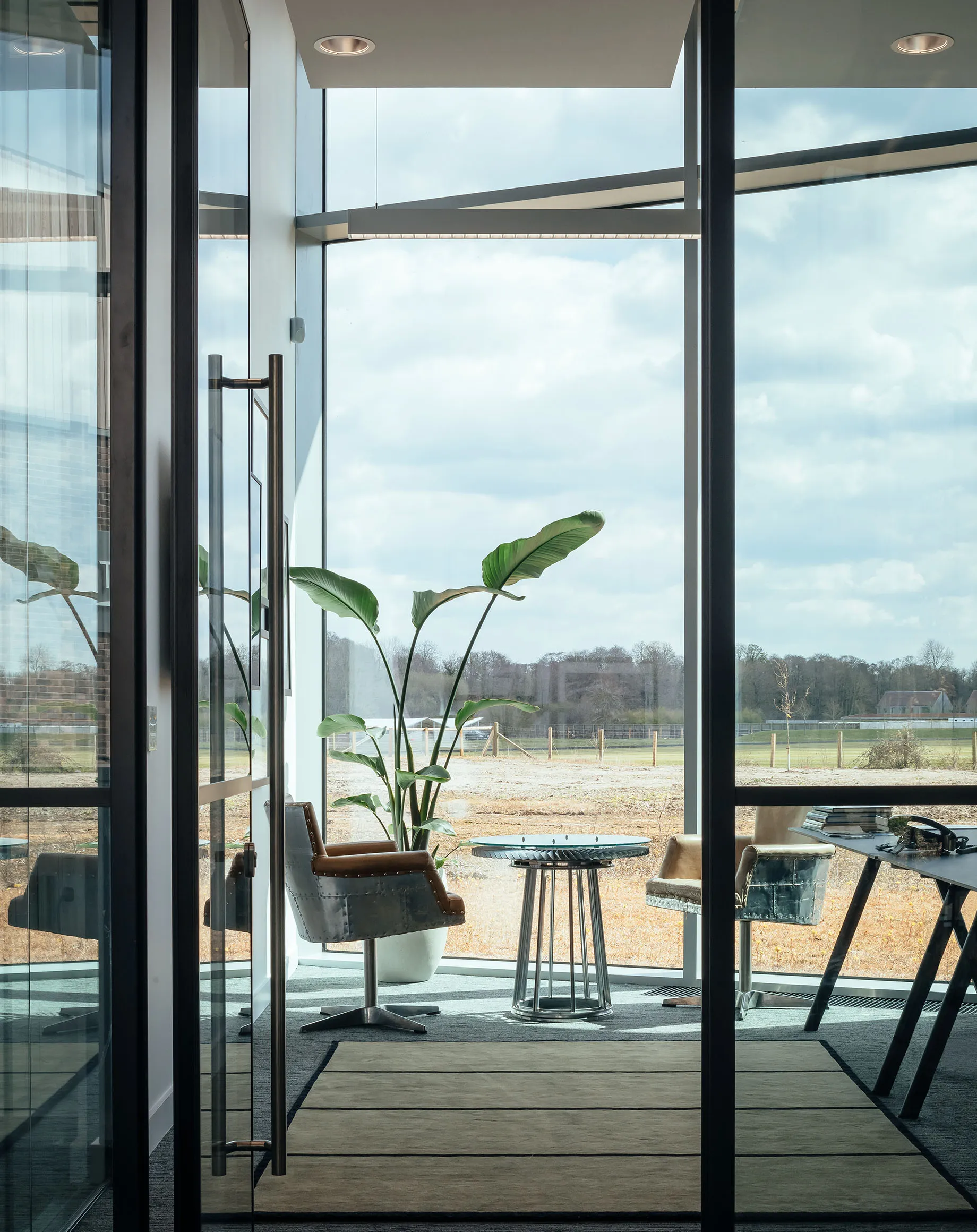 This new-build HQ for luxury British watchmaker Bremont is situated within the grounds of a private estate, facing onto the fields of the Black Bears Polo Club.