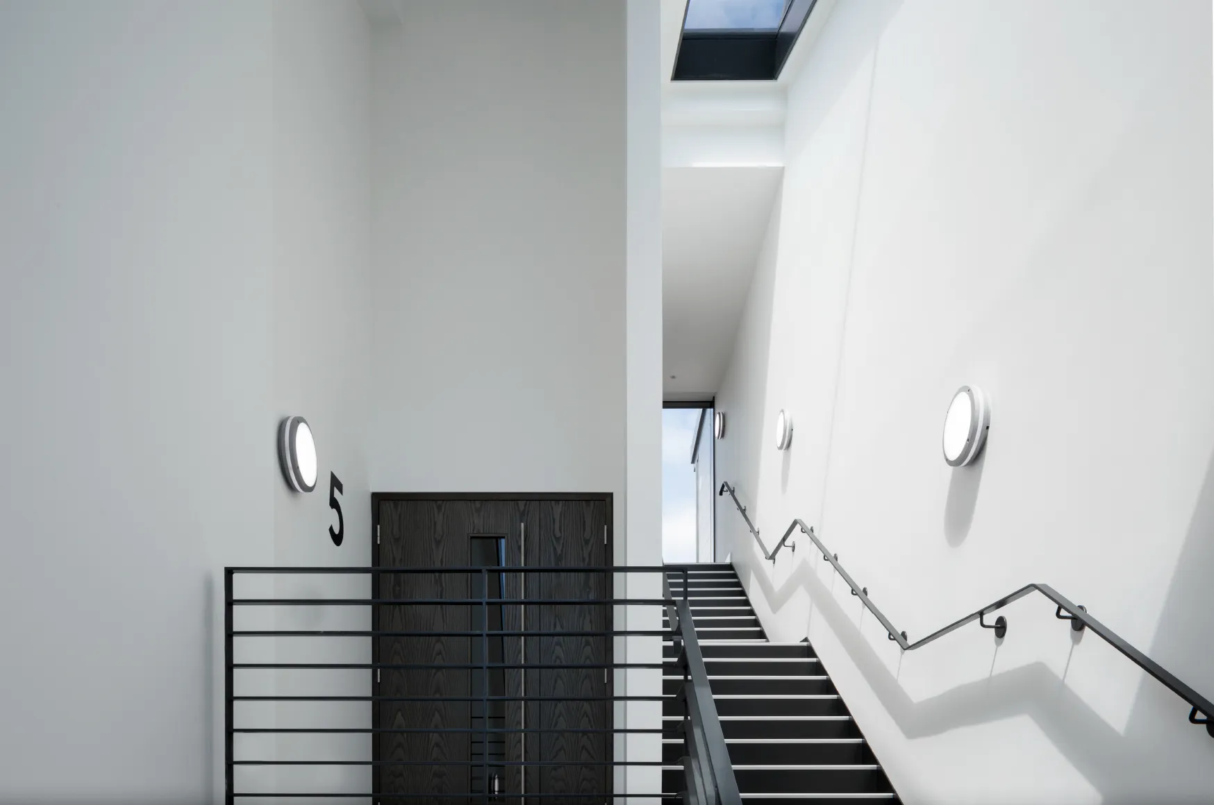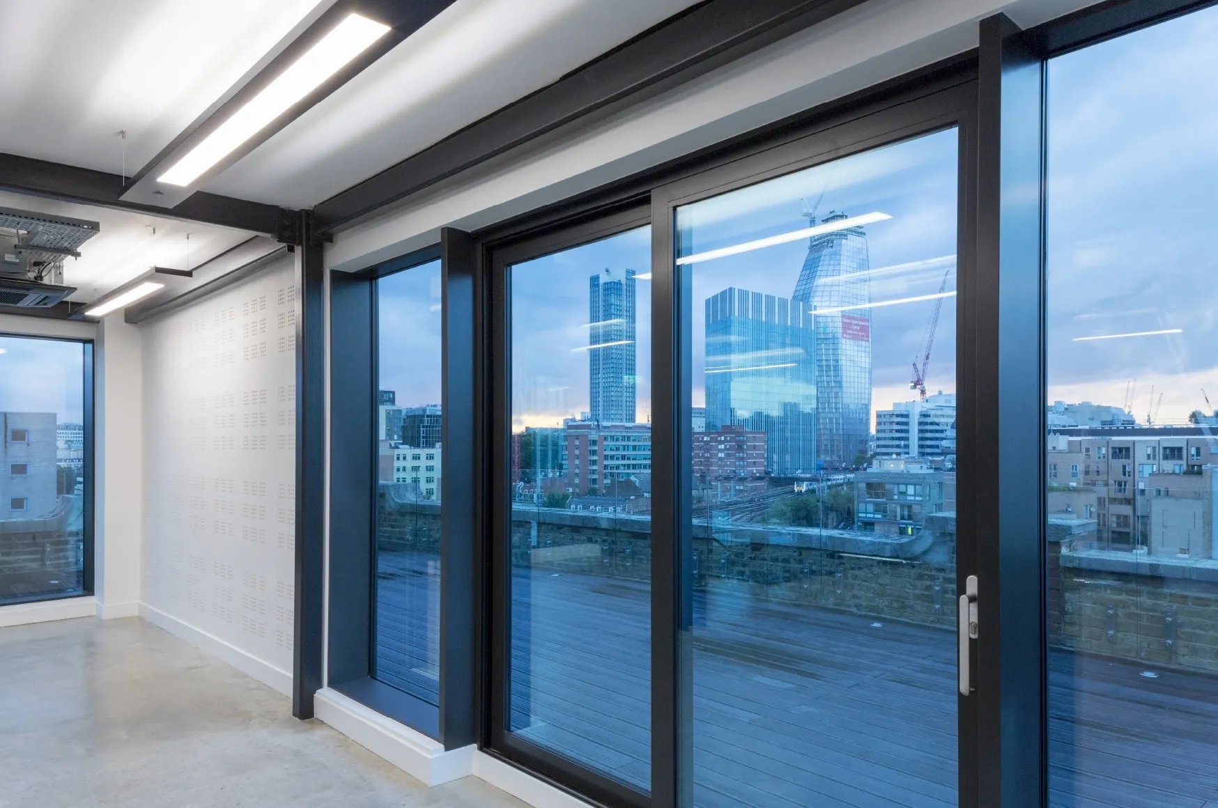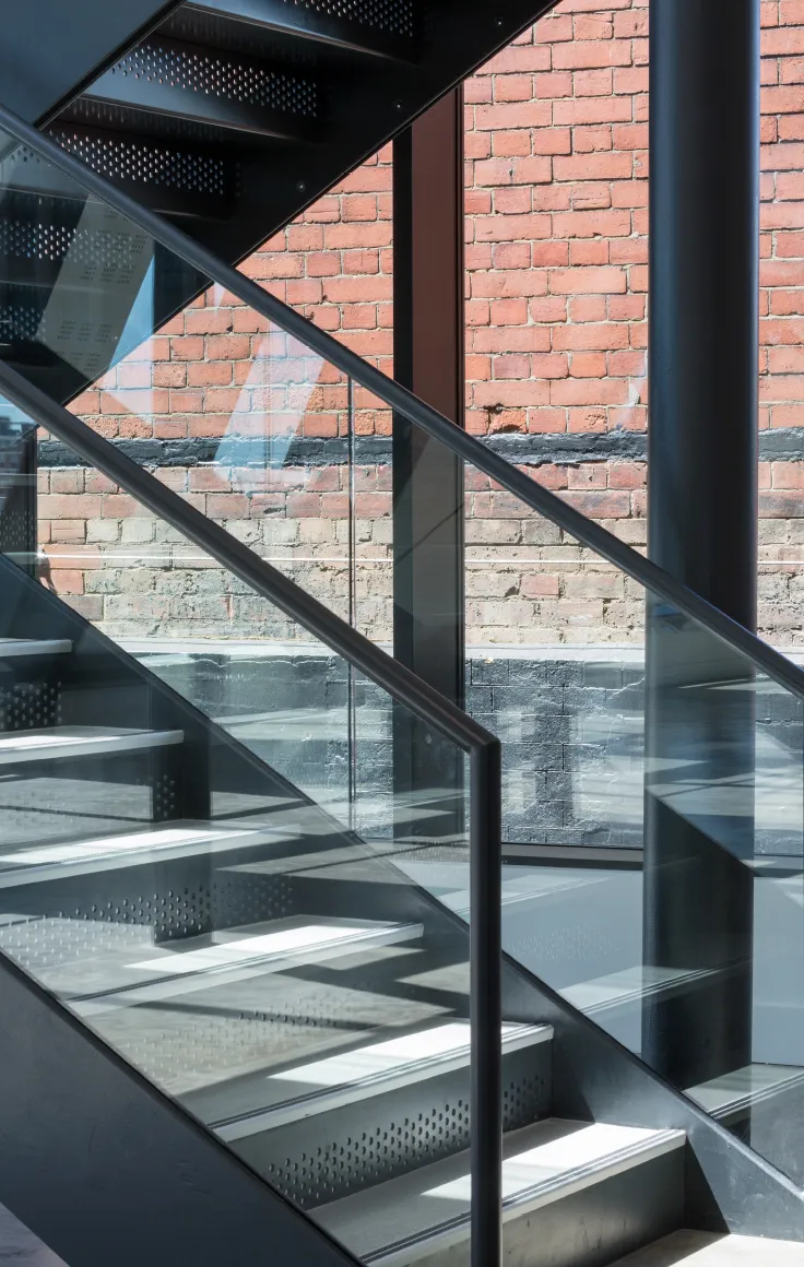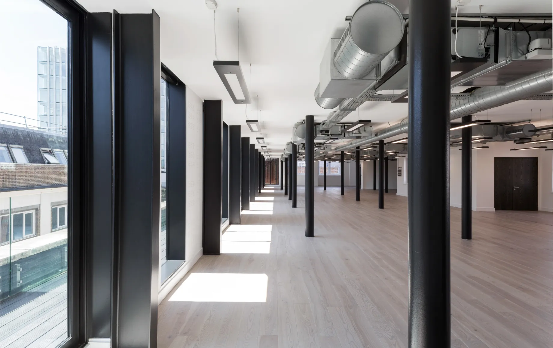The reception and four floors were refurbished; creating high-specification and energy efficient working environments. The interior design and materials palette is in keeping with the building's history as an industrial warehouse. Reclaimed steel doors and refurbished riveted steel columns mix with clean white interiors to create a contemporary feel. The new reception area, signage and lighting help to brand the building, celebrating its heritage.