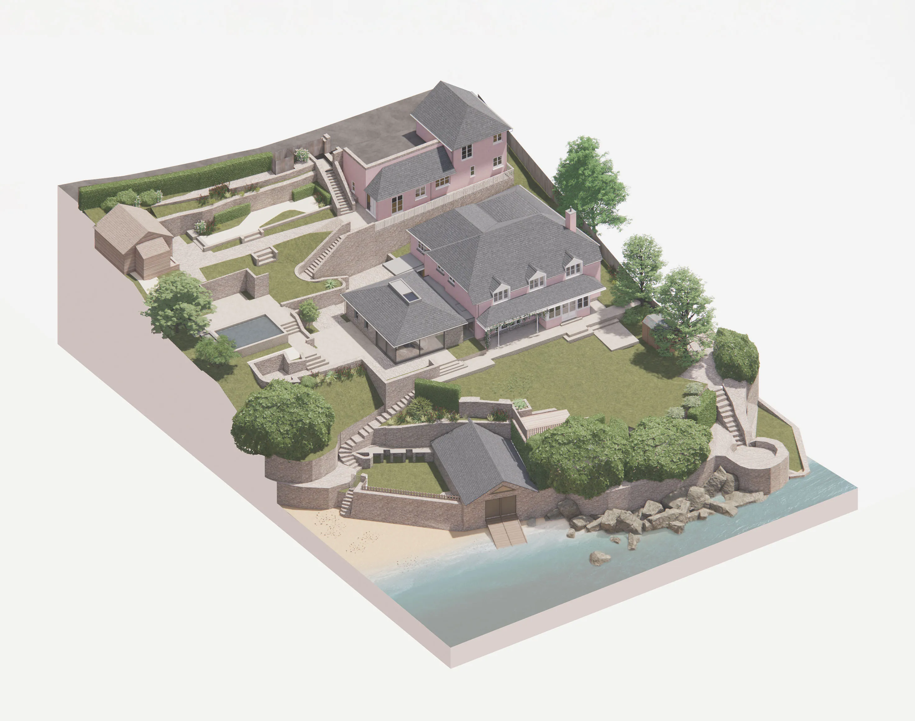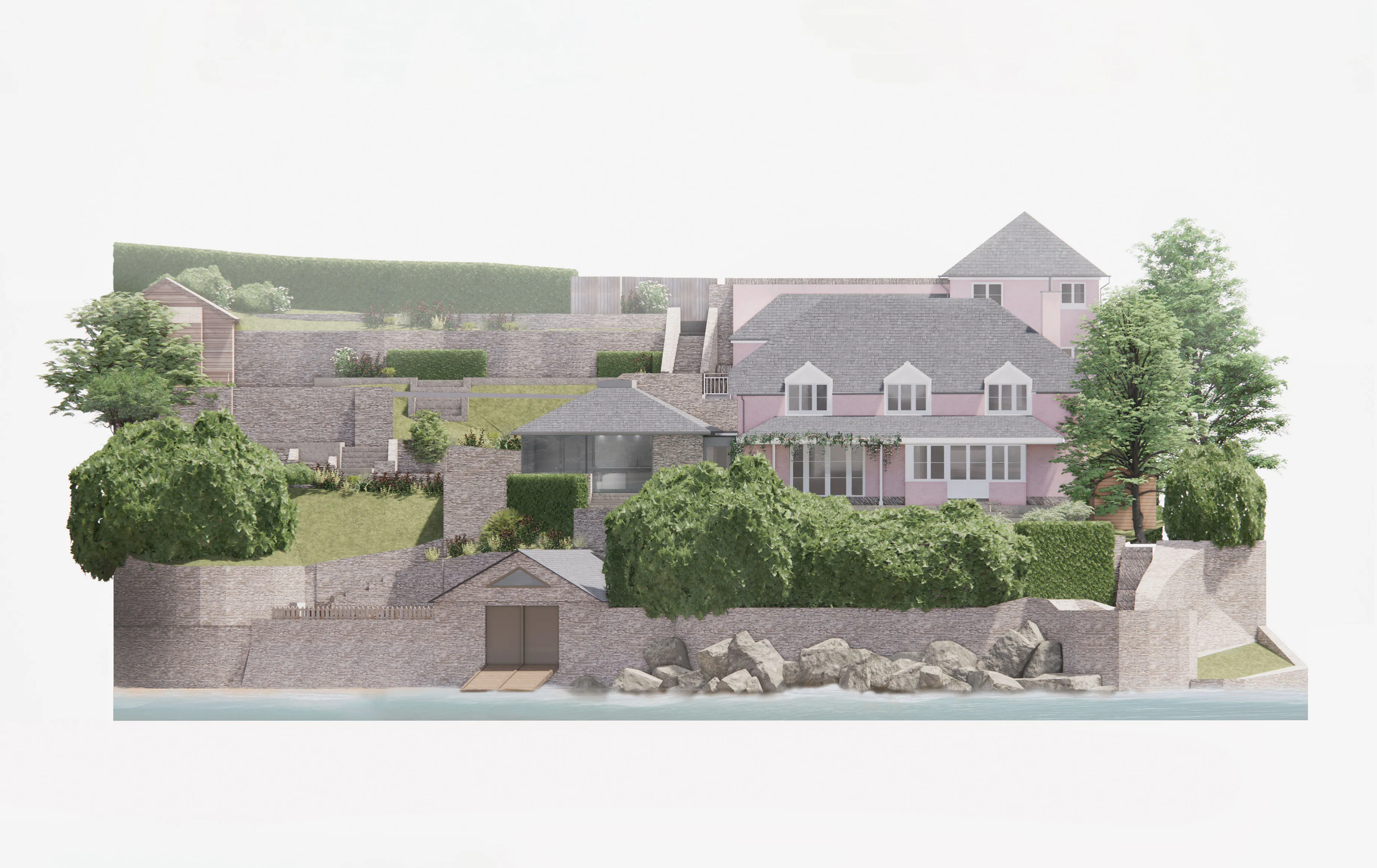 The site is within an Area of Outstanding Natural Beauty and next to Kingsbridge Estuary Site of Special Scientific Interest (SSSI). This is important for its very rich and diverse intertidal and subtidal flora and invertebrate fauna in the estuary. From the beginning, we have worked closely with the planning department to ensure the design and workings of the property are in keeping with, and respectful of, the environment and prominent location.