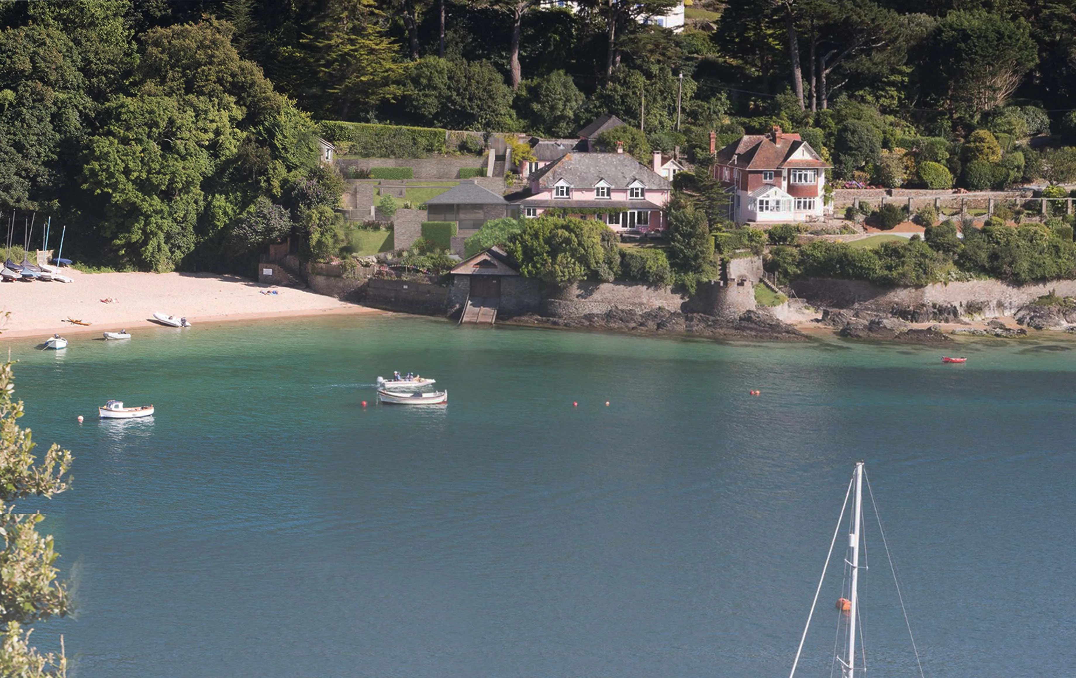 Waterside is a characterful property that sits on the banks of the estuary between Salcombe and Kingsbridge in Devon. On a steep hillside, the property’s gardens fall sharply towards the waterline, with extraordinary views out across the river to the north-west.